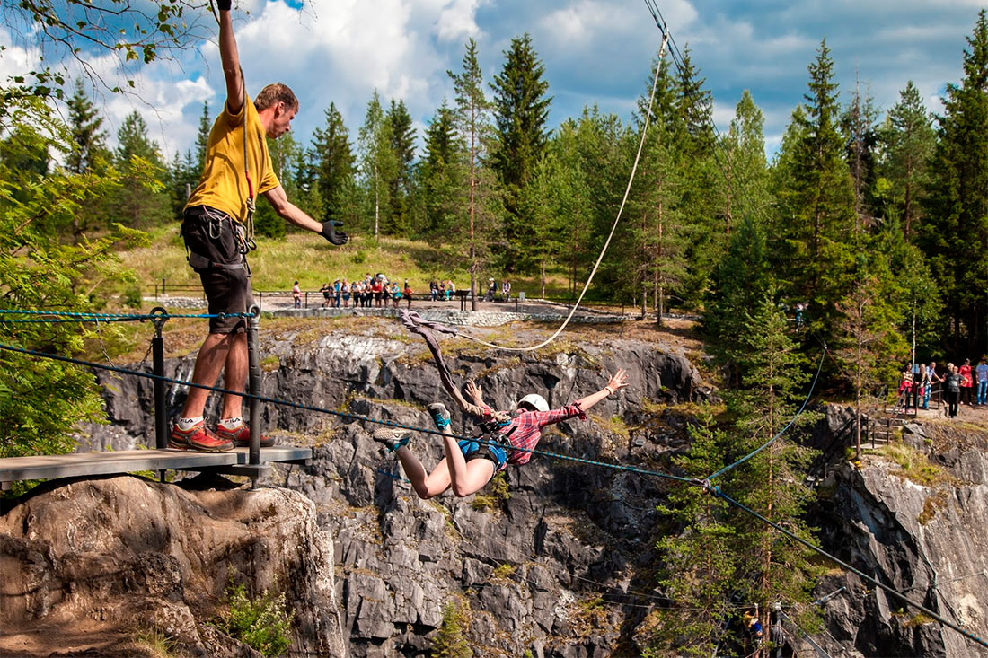Круглый год здесь летают на зип-лайне. Высота полёта над карьером — 400 м, длится такое удовольствие не больше двух минут. Стоимость — 1200 руб. Есть ограничения по весу и возрасту.