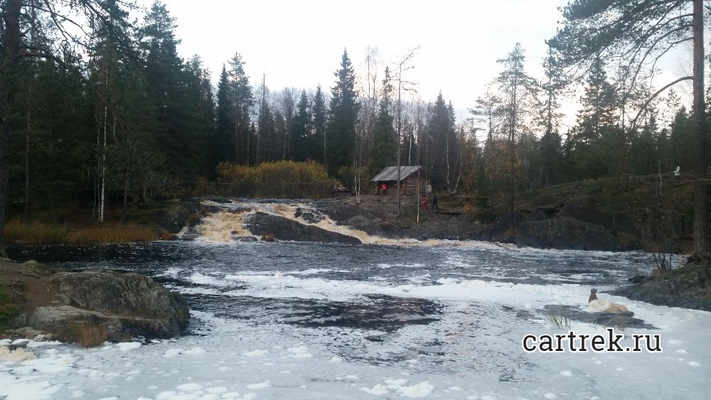 Рускеальские водопады. Находятся в трёх км от посёлка Рускеала и в 25 км от Сортавалы. Место стало известным после выхода фильма «А зори здесь тихие». Водопадами это место назвать сложно: высота потоков воды не превышает трех-четырех метров. Рядом — оборудованная площадка, беседки и парковка. Посещение обойдётся в 250 руб. (на февраль 2021 года).