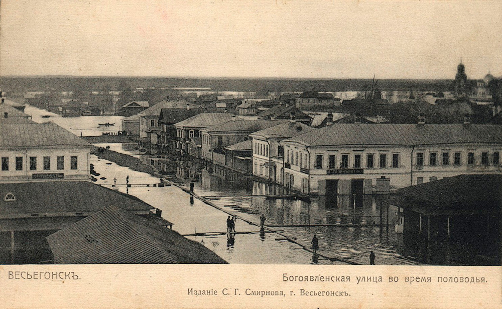 В 1939-1941 годах при строительстве Рыбинской ГЭС старый Весьегонск попал в зону затопления. Весь старый город ушел под воду и был разрушен. Ушли под воду старинные весьегонские храмы, городские площади и городской сад. Затопления избежали лишь несколько окраинных улиц.