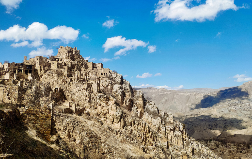 Только вдумайтесь, это один из самых высоких каньонов мира! Знаменитый Гранд каньон на плато Колорадо и рядом не валялся. Сулакский гигант выше прославленного американца на 120 м. Его общая высота 1920 м, откуда открывается головокружительная панорама на горы, аулы где-то вдалеке и вьющуюся среди гор изумрудной лентой реку Сулак.