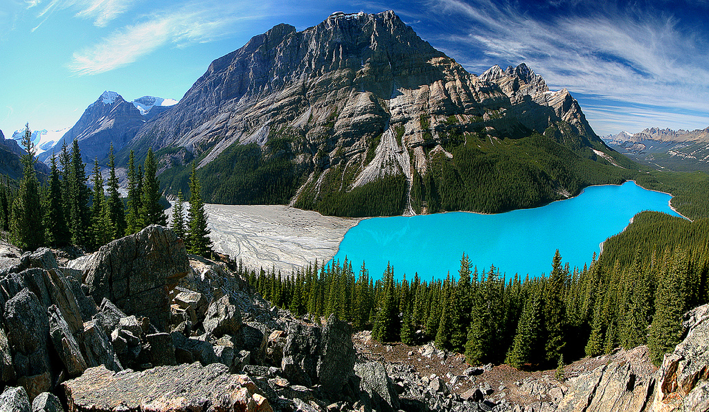 Удивительно синяя вода этого ледникового озера не позволяет пройти мимо него. Чистота воды настолько удивляет, что в ее отражении можно до микроскопичной точности рассмотреть окружающие горы. Благодаря этому к нему съезжаются туристы как трутни на мед. Но иногда этот райский уголок недоступен, потому что из-за чрезмерной активности местных медведей гризли приходится перекрывать маршрутные дороги.