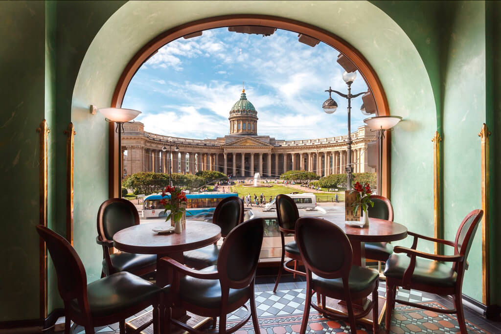Многочисленные традиции русской красоты, удобства, элегантности удалось объединить в создании известного кафе «Зингер». Атмосфера оригинального здания XX столетия, его дух окутывают столики, кресла, из которых можно любоваться величественным Казанским собором, окрестностями незабываемого города. Утончённое гостеприимство Санкт-Петербурга стало традиционным способом обслуживания гостей в кафе, находящемся на втором этаже знаменитого Дома Зингер. Неспешный отдых проходит в окружении зелёной отделки стен, южных пальм, массивной мебели, выполненной в старинных округлых формах.