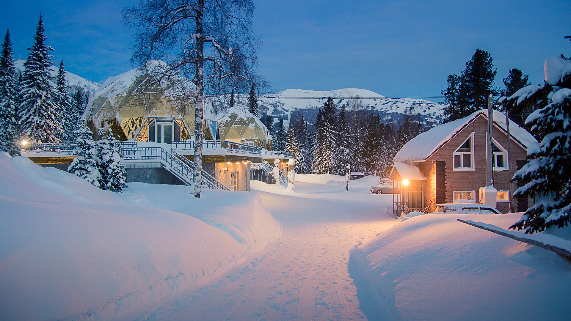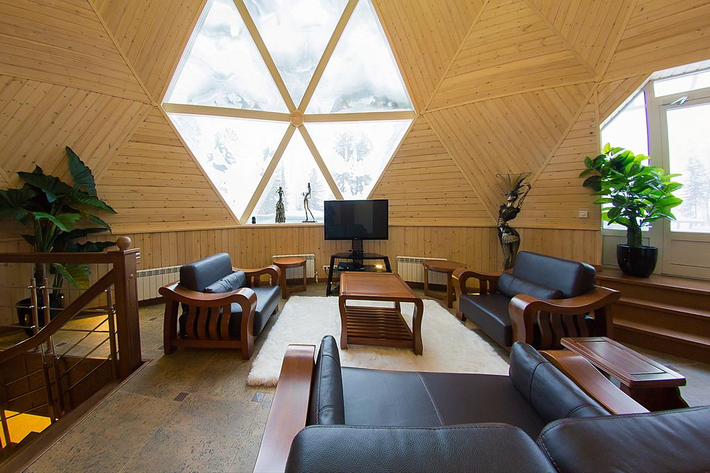 Гостиничный комплекс в центре поселка Шерегеш предлагает отдых в двух необычных зданиях в форме геодезических куполов у подножия горы «Зеленая». Ближайший подъемник горнолыжного курорта находится всего в 1 километре от комплекса. До него можно добраться на личном автомобиле или заказать трансфер в отеле.