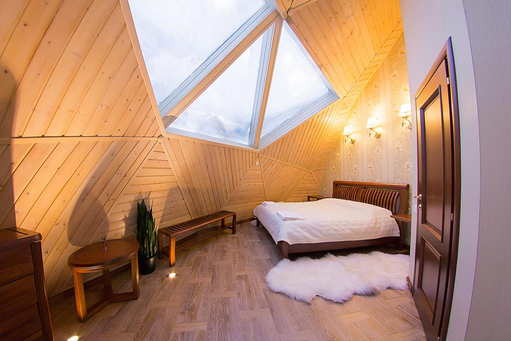 Гостевые дома туркомплекса — это двухэтажные «воеводские палаты», которые состоят из четырех двухкомнатных номеров и одного трехкомнатного. Их украшают домотканые коврики из лоскутков, вышитые бисером картины на стенах, сундуки, которые служат одновременно столами, кроватями и хранилищами для вещей, старинные настенные часы с кукушкой.