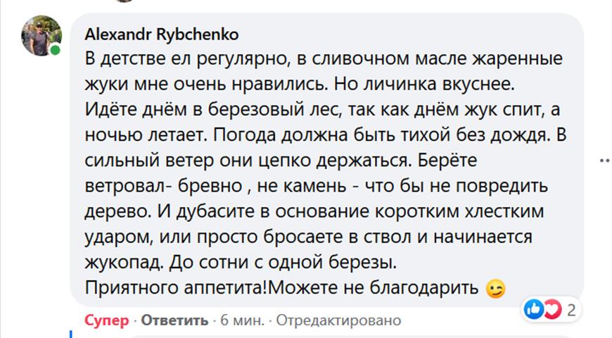 Рецепт с майским жуком из Зауралья (от Александра Рубченко с Фейсбука)