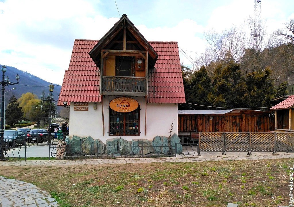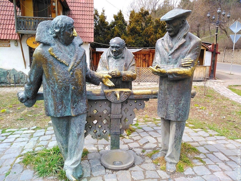 И угощение, которым угостил нас сопровождающий (как он сказал «просто не успел позавтракать»), подняло настроение. Памятник трем великим артистам и великому фильму находится через дорогу. Из крана должна была бежать вода, как и в Ереване, но по непонятным причинам включена она не была. Но мы не сильно расстроились. За Мимино есть симпатичный сувенирный магазинчик.