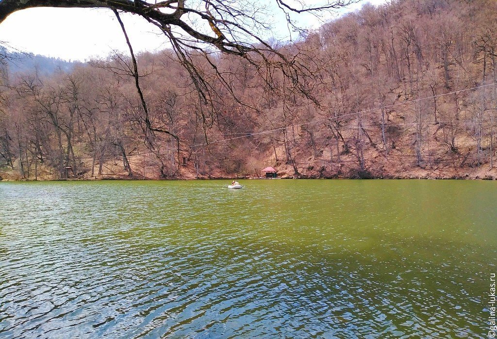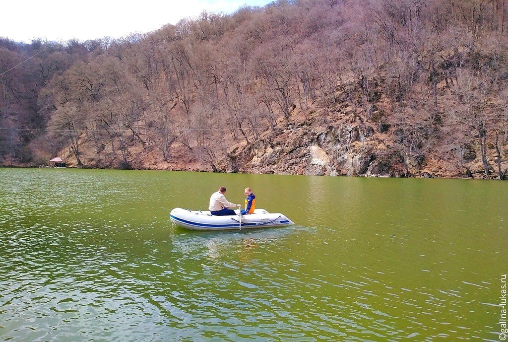 На лодке с веслами Миша с Полиной с удовольствием покатались по этой изумрудной с переливами глади. Я ждала их, гуляя на берегу.