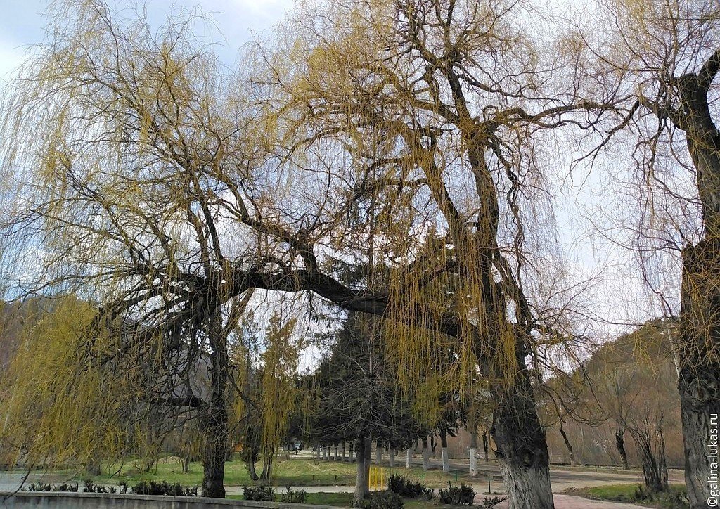 Только начинающая цвести плакучая ива скрасила грустные впечатления от незаполненного озера.
