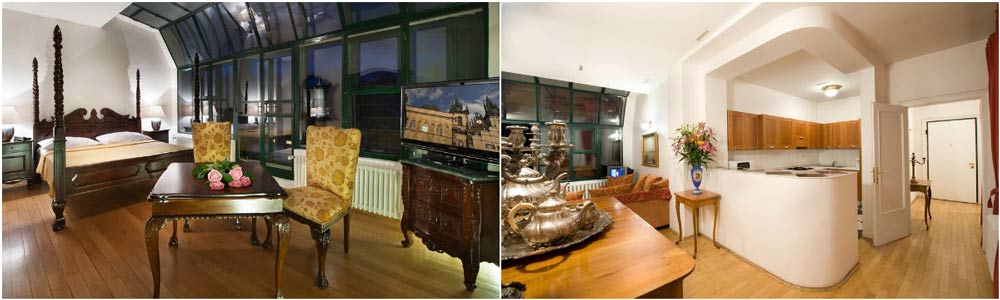 В Праге также доступен широкий выбор комфортных и уютных апартаментов, где можно очень удобно разместиться за вполне доступную плату. Апартаменты отличаются от обычного жилья тем, что в них оказывается весь спектр гостиничных услуг. А также в них нельзя прописаться, можно только сдавать в аренду. Популярный сервис booking.com предлагает огромный выбор апартаментов на любой вкус.