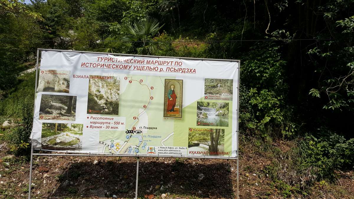 Попасть в Новый Афон просто. Нужно ехать по основной трассе никуда не сворачивая. Дорога двухполосная и вполне приличная. По пути есть два поста, но предупреждающие знаки имеются.