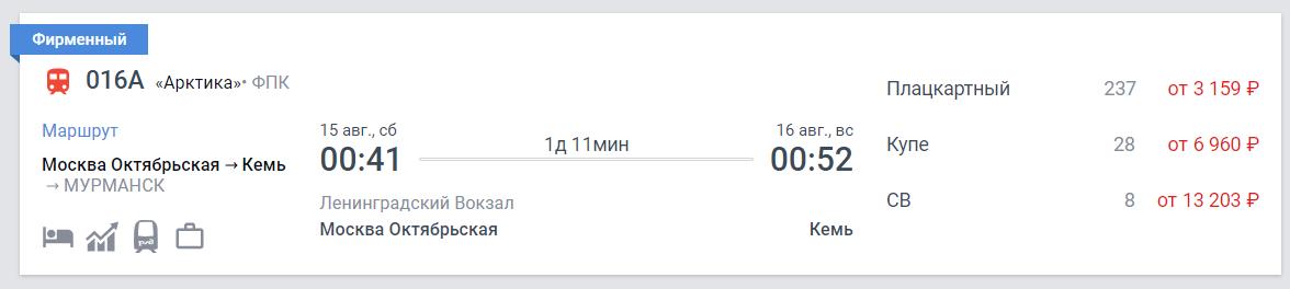 - Время отправления – 08.30