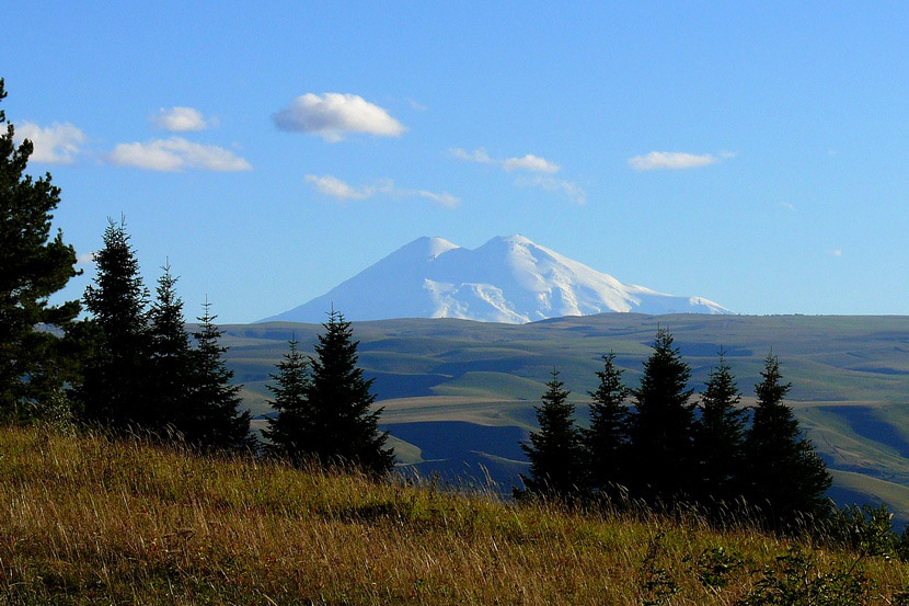Вид на Эльбрус с запада, идти к нему далеко.