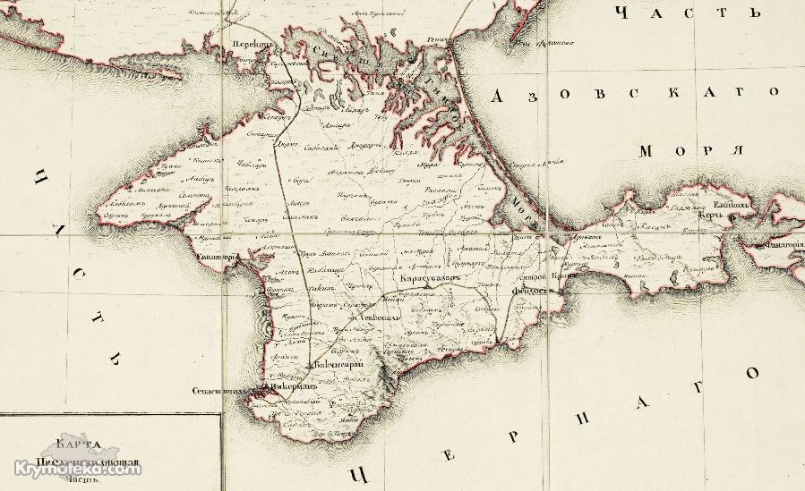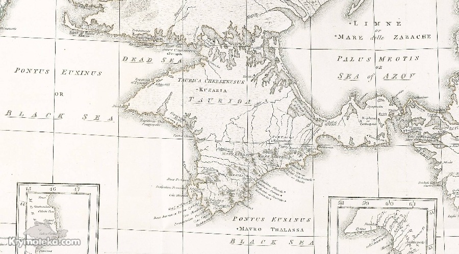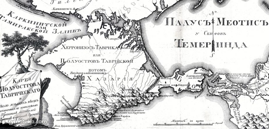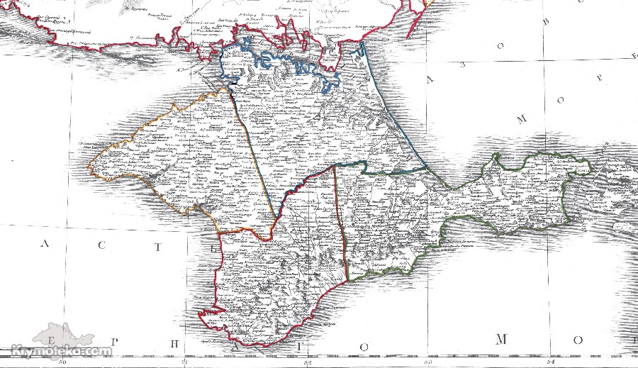 Карта Полуострова Таврическаго и около лежащихъ мъст, сочиненная по извъстиям Греческихъ писателей древнихъ и среднихъ времянъ. По известиям, то есть со слов! А горы изображены уже только там, где они есть и вообще карта не хуже любого спутникового снимка.