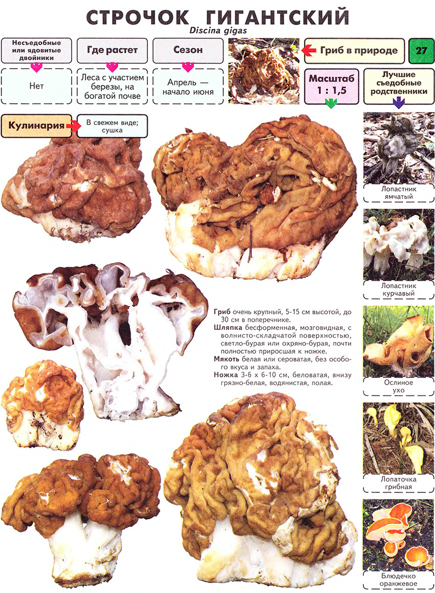 Кроме этих двух видов есть еще строчок гигантский (большой) с внушительным размером шляпки до 30 см в диаметре!