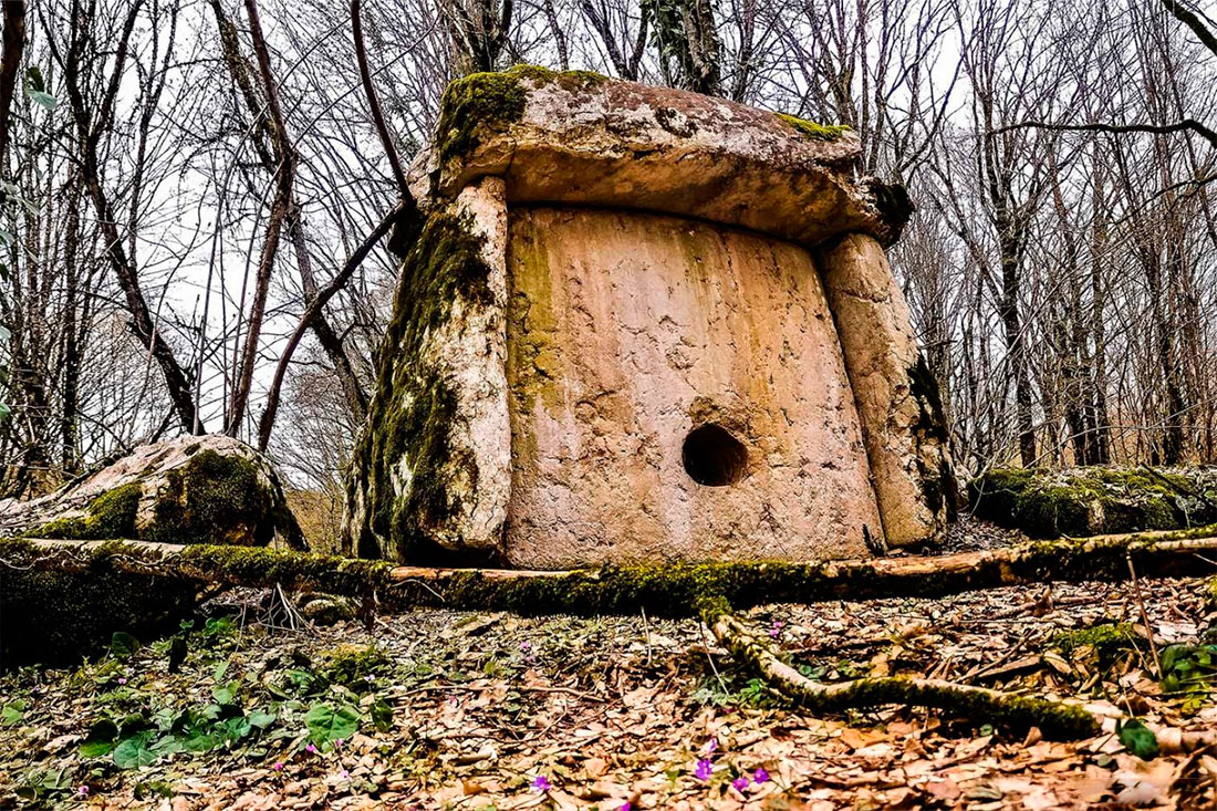 Абхазские дольмены строились местными племенами как усыпальницы. Считается, что они естественным образом стали продолжением других погребальных сооружений, более типичных для региона, – курганов. Поскольку в гробницах размещались ценные вещи, обустраивали их в труднодоступных укромных местах.
