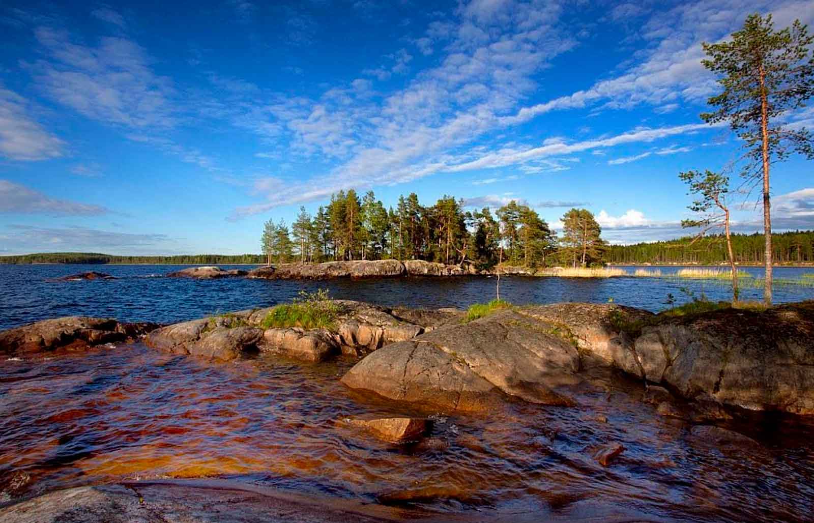 Бескрайние озера Ладожское и Онежское находятся на северо-западе России. Делят водоемы между собой Карелия и Ленинградская область, часть Онего в Вологодской области. Они во многом схожи, последний валдайский ледник (17 – 16 тысяч лет назад) медленно полз в сторону современной Тверской области. Тонны льда тащили разрушенные горные породы, полировали возвышенности и кряжи. Эти крупные водоемы образовались после ухода последних ледников, которые потрудились над ранее существовавшими здесь тектоническими впадинами. Похожи Ладожское и Онежское озера изрезанностью берегов образующих многочисленные мысы, бухты, полуострова, заливы, полуострова. Схожи шхерами, то есть россыпью больших и малых островов разделенных между собой лабиринтами проливов, полуостровами.