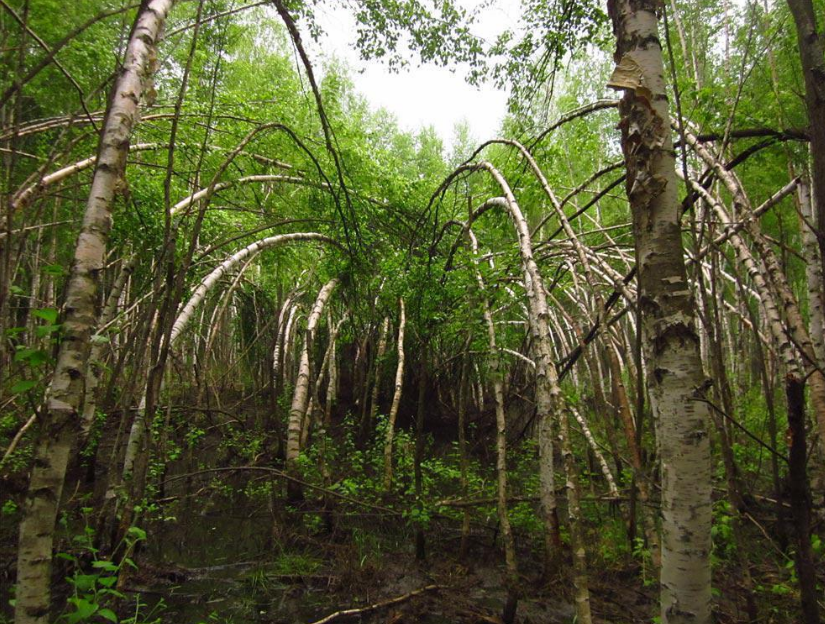 Отметки о странных растениях в урочище встречаются и в записях других экспедиций. В частности, краевед Черныш писал, что обнаружил в зоне рощу берез с квадратными (!) стволами.