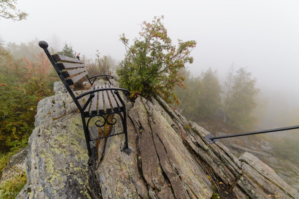 Основательно поев и отдохнув, решаем таки сбегать на Круглицу. Таких неугомонных оказалось всего трое – я, Наташа и Ира. Обувь еще не высохла, но охота пуще неволи. Со скрипом одеваю мокрые кроссовки и иду. Непонятно почему с трудом поднимаюсь в гору. Болит мышца на левой ноге, иду из-за этого медленно. Дойдя до Долины Сказок, понимаем что ловить на Круглице нечего, кругом туман. Мы оказались в облаке. Устроили фотосессию на скалах смотровой площадки у Долины Сказок.