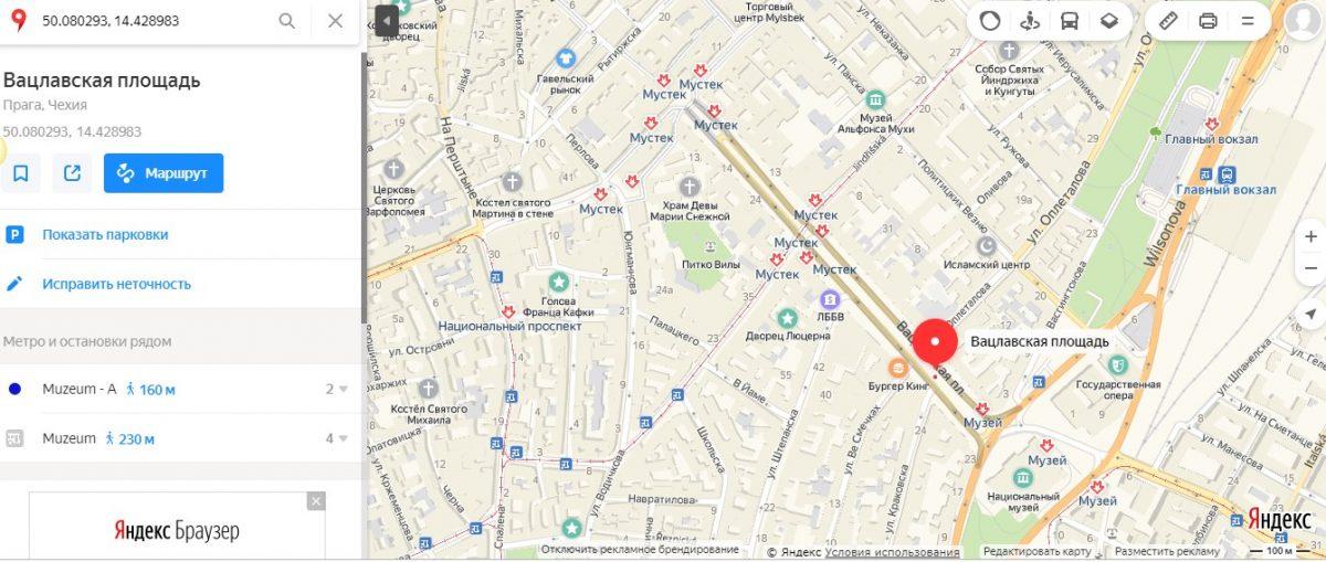 Удобство заключается в том, что система распознает как англоязычное сокращение сторон света, так и русскоязычное. Обозначения можно ставить перед цифрами или после них. Например, упомянутые выше координаты могут быть представлены так: N50.080293, E14.4289835 либо в русскоязычном варианте С50.080293, В14.4289835.