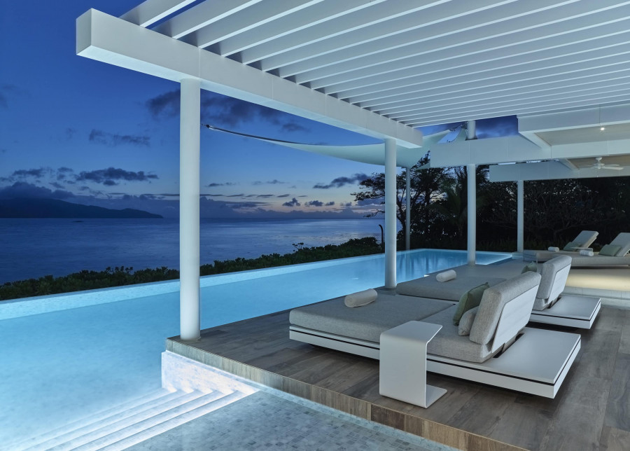 Вас ждут шесть вилл на пляже и 12 номеров в саду. Панорамные окна позволят насладиться удивительными видами на океан и тропический лес светлячков — вечером он переливается,как гирлянда. К каждому номеру приставлен дворецкий. Максимальное число гостей — 48.