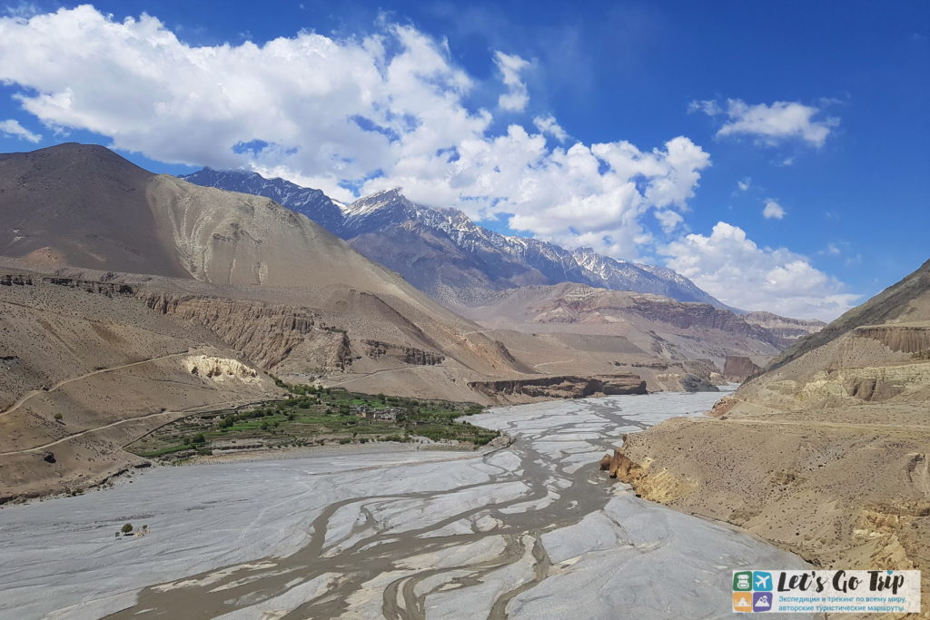 Мы пройдем через пустынные пейзажи, откуда нам откроется панорама на Даулагири и Нилгири, через тибетскую деревушку Дзонг спустимся в долину реки Кали Гандаки, где приютилась древняя деревня Кагбени на стыке Нижнего и Верхнего Мустанга. Местные жители сохранили традиции Тибета. По улицам прогуливаются женщины в традиционных одеждах. Кажется, что время здесь замерло. Заказываем обед и пока нам будут готовить самые вкусные бургеры во всем регионе, прогуляемся в сторону Запретного Королевства Ло.