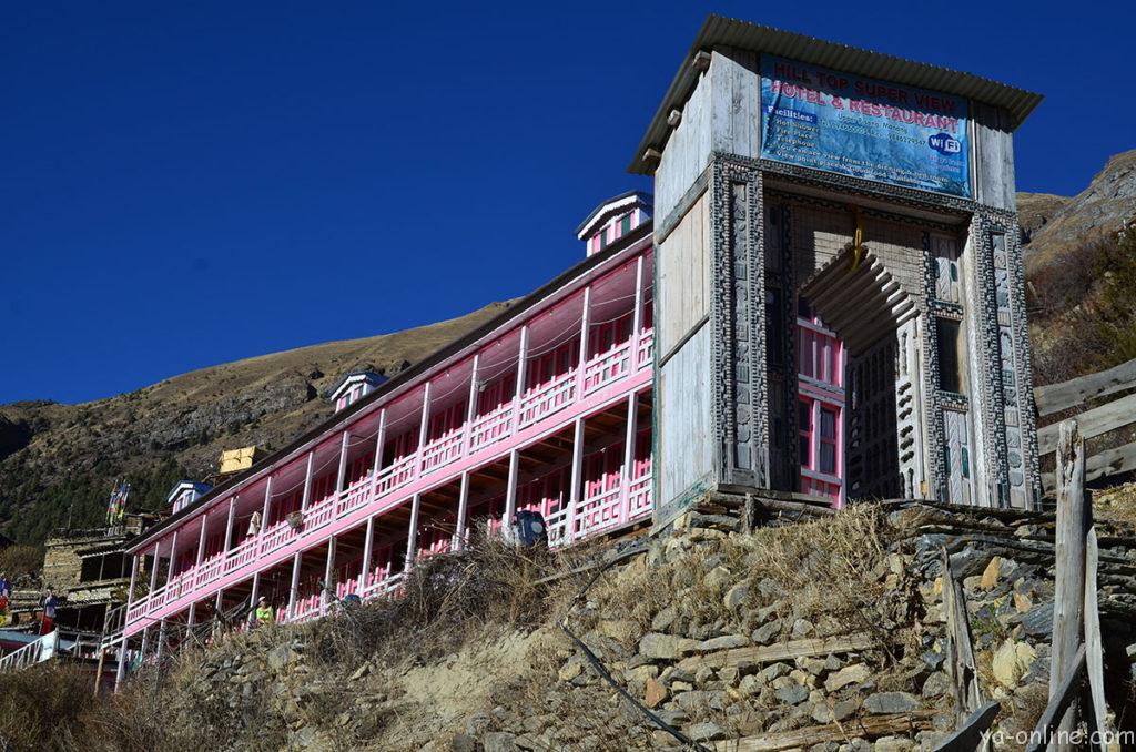Не ожидайте увидеть отель в европейском понимании этого слова. В Непале гостевой дом – это просто комната в небольшом доме, обычно построенного из простого материала без утеплителя. В комнатах стоят обычные кровати с каким-либо матрасом подушкой, иногда с одеялом. Постельное белье здесь не меняется, поэтому обязательно нужно брать с собой легкий пуховый спальник, рассчитанный лучше, конечно, на холодную температуру, но все зависит от времени года, высоты и личных предпочтений. Конечно же, в комнатах отопления нет. В самых шикарных гостевых домах могут стоять какие-то тумбочки и быть туалеты в комнате. Туалет – это обычно просто дырка в полу, возле которой стоит ведерко с водой.