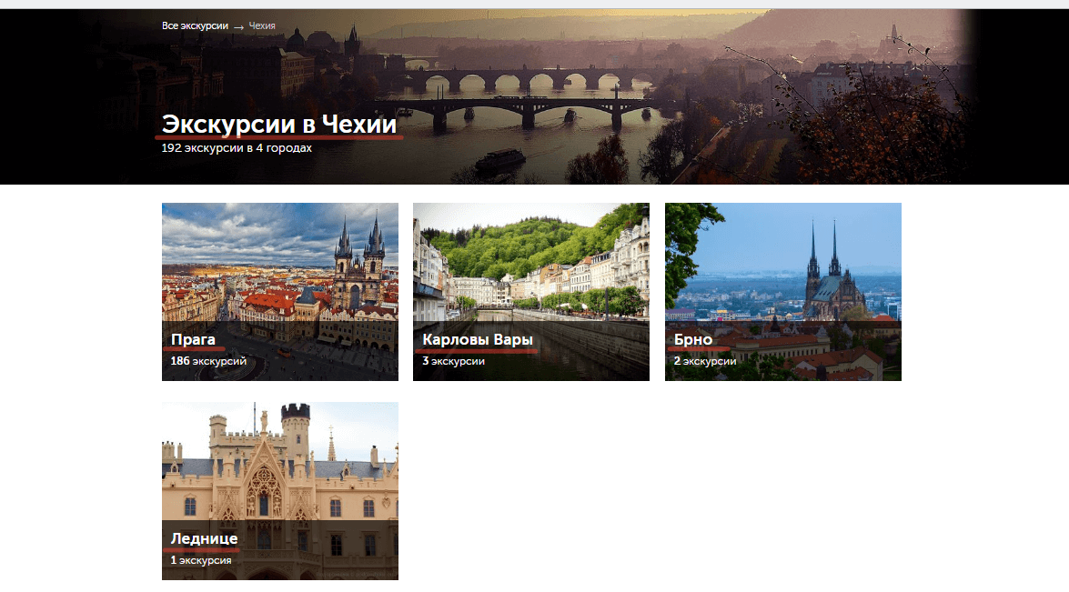 В первом случае – откроется список всех экскурсионных программ, доступных в пункте назначения.