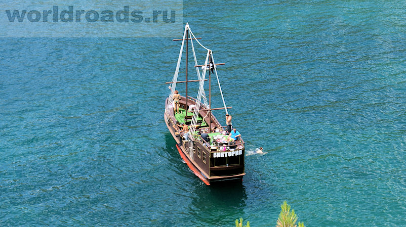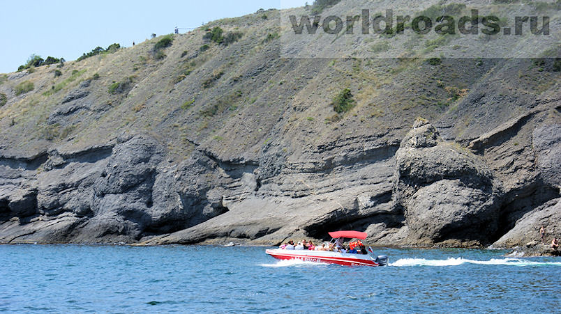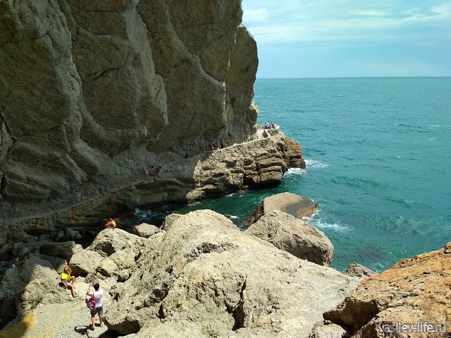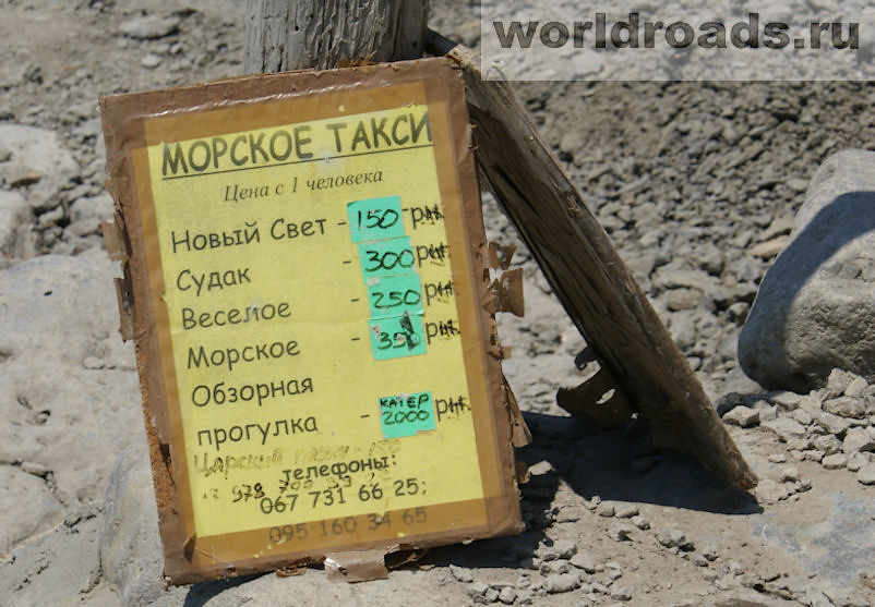 Морское такси ходит из Нового Света, Весёлого (имеется в виду Весёловская бухта, конечно), Судака, Морского (цены соответственно: 150, 250, 300, 350 рублей с человека, зависит от места отправления, смотрите фото выше). Обычно доставляют на Царский пляж. Оттуда прямого пути на Тропу Голицына нет, просите высадить в Разбойничьей бухте. Морское такси предлагают, начиная с ул. Шаляпина, и в районе набережной, даже искать не придётся – Вам предложат сами.