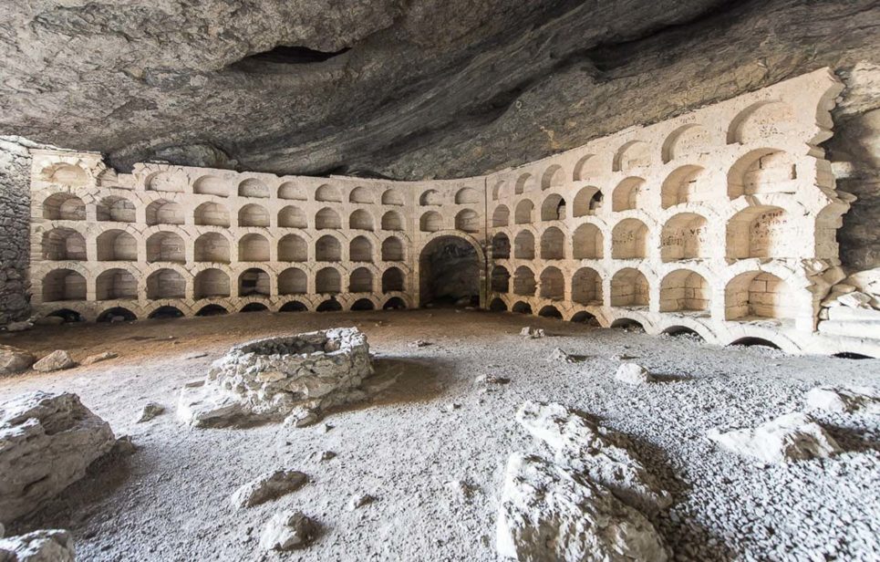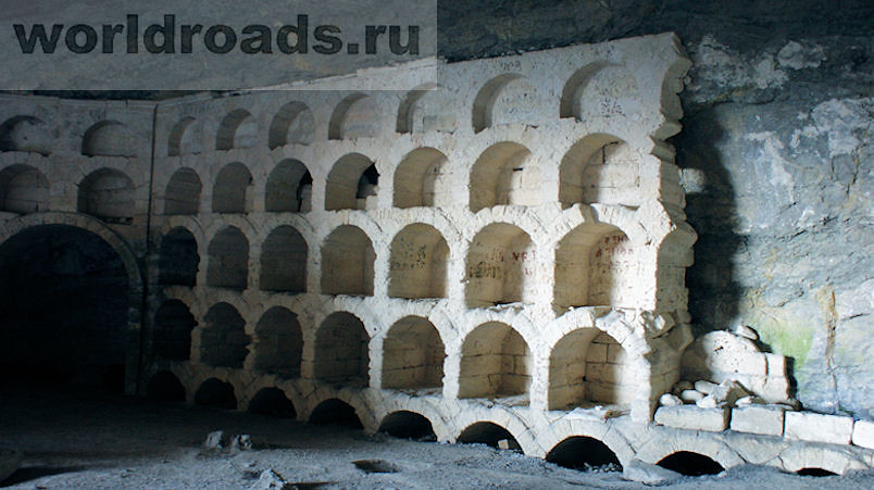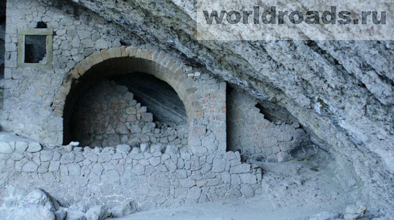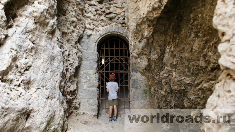 Естественно, той двери уже давно нет, вместо нее появилась решетка, закрывающая вход. С другой стороны, пещерное образование имеет две галереи с лестницами из камня, также оборудованными Л. Голицыном.