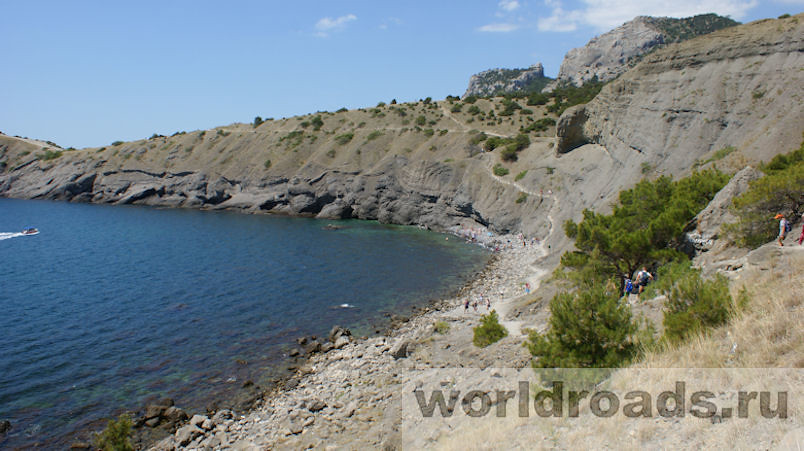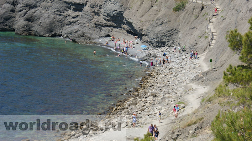 От Весёловской бухты рекомендую ходить тем, кто любит горные походы. Оттуда самый дальний путь, через гору Караул-Оба, идти больше 3 километров по пересечённой местности. Самая короткая дорога оттуда через Долину Ада, очень колоритное место. Начинать дорогу из левой (южной) части пляжа.