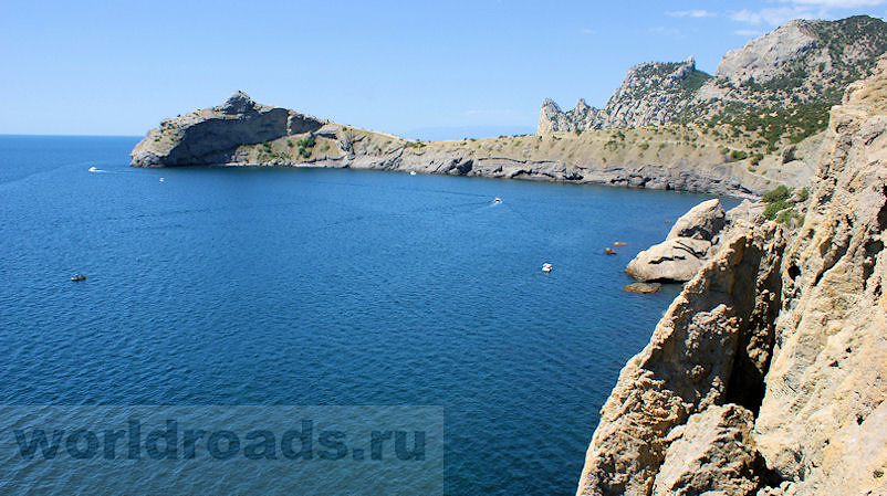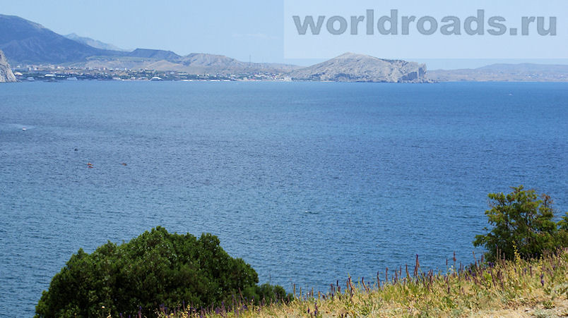 Направо – вид на Голубую бухту, гору Караул-Обу (даже не верится, что мы пойдём туда) и Царский пляж.