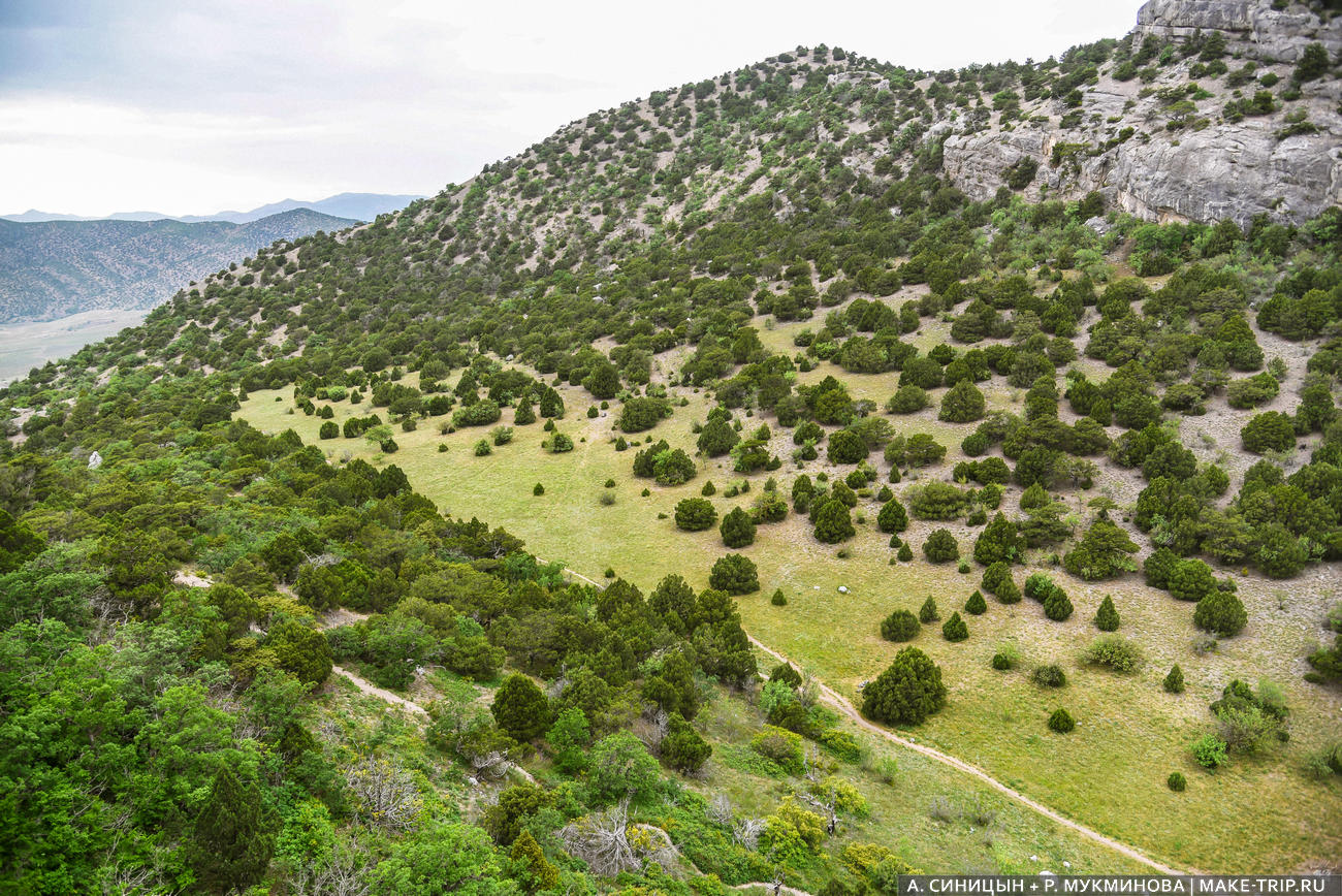 С Капчика идите вдоль Сухой балки через можжевеловый лес, пересеките балку и поднимайтесь по пологой маркированной тропе по указателю на Караул-Оба и пик Космос. По пути будут открываться потрясающие виды, особенно мне нравится смотровая «Бонсай». Тут вкусно пахнет хвоей