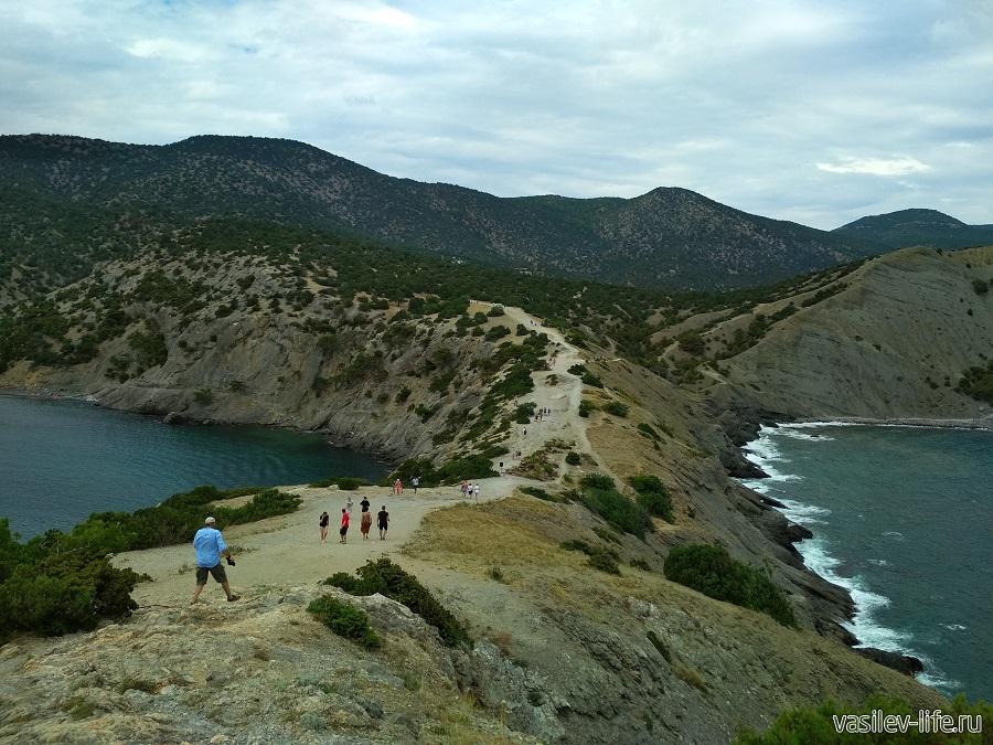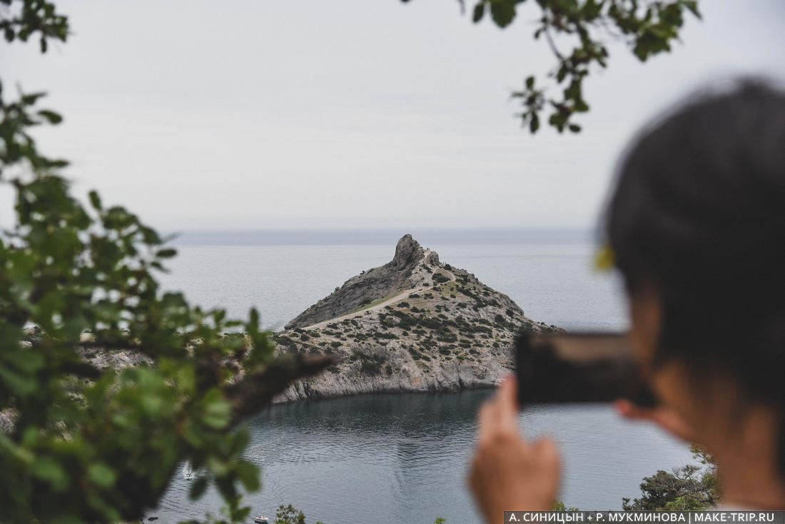 Направо – вид на Голубую бухту, гору Караул-Обу (даже не верится, что мы пойдём туда) и Царский пляж.