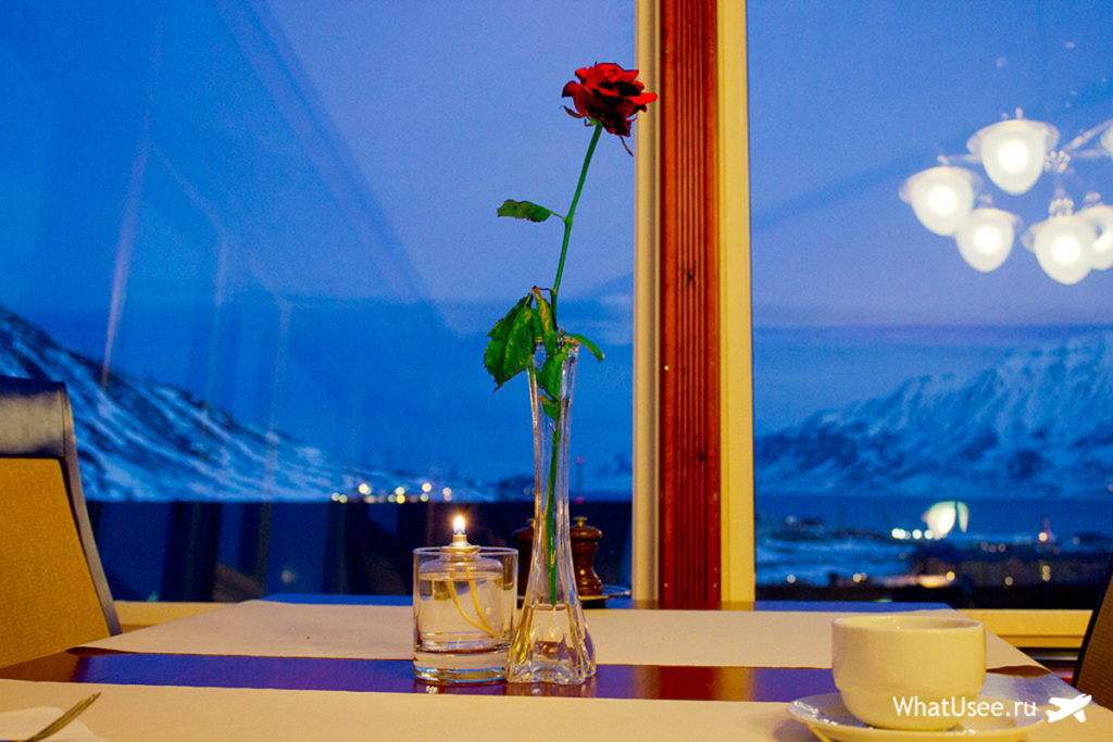 Funken — историческое название этого отеля, который был первым гостевым домом на архипелаге Шпицберген. В те времена в отеле Funken останавливались и жили работники компании Store Norske Spitsbergen Coal Company. В целом отель отличный: достойный сервис, расположение чуть поодаль от главной улицы Лонгйира, вид на фьорд и город — одни плюсы. А с 4 до 6 гостей угощали бесплатным кофе с вкуснейшими норвежскими вафлями Кофе, вафли и брунуст — и жизнь прекрасна, особенно, когда на улице мороз, а за окном северное сияние.