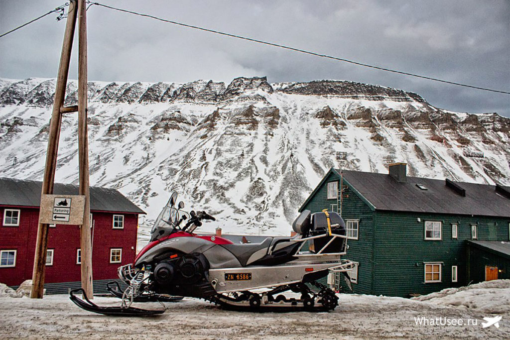 Но вернёмся в город Лонгйир. На фотографии ниже — контора по аренде снегоходов и снегоходных утров по Шпицбергену.