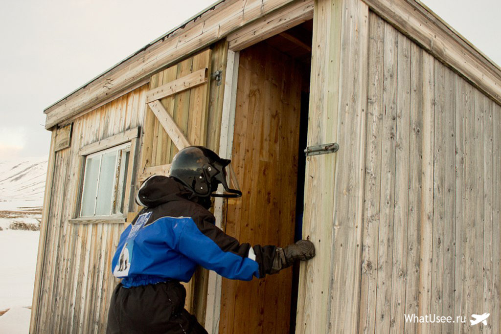 Расстояния наШпицбергене довольно большие. Путь из Лонгйира в Баренцбург составляет пару часов. Поэтому всегда есть риск попасть в неприятную ситуацию — снежную бурю, например, или водитель на снегоходе может почувствовать себя плохо. Для таких случаев на Шпицбергене предусмотрены подобные укрытия.
