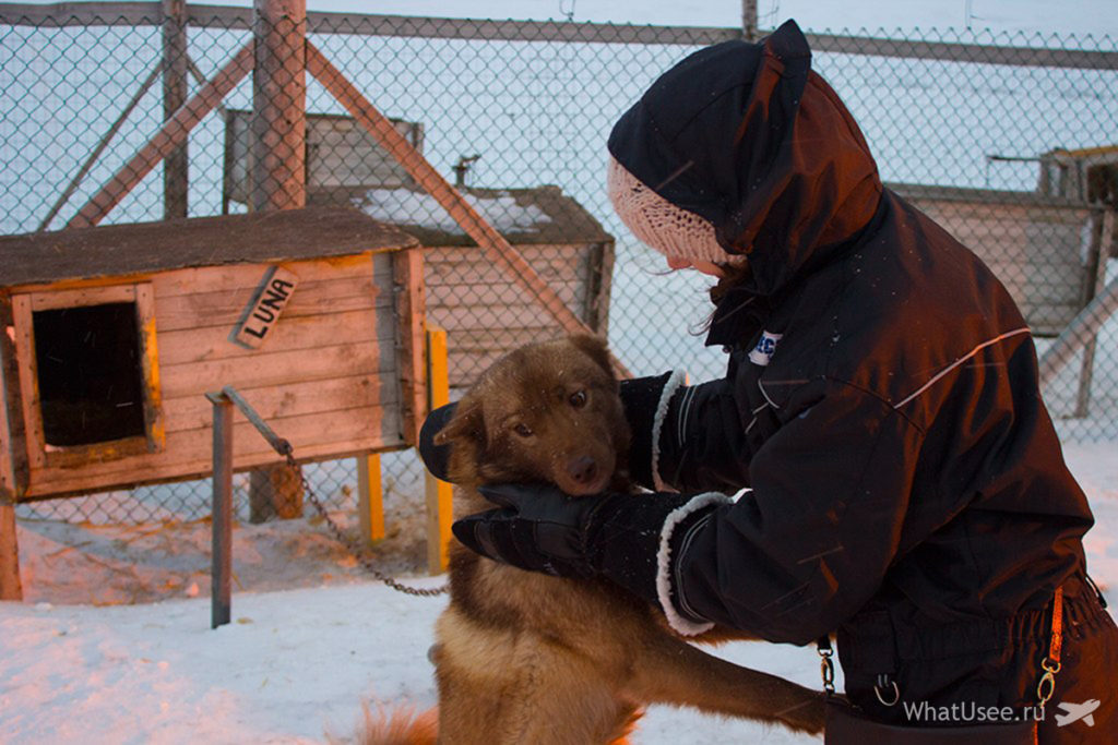 Поэтому каждая собака пытается привлечь внимание к себе как может. Вся амуниция — толстенный комбинезон, рукавицы, ботинки — выдаётся на месте и входит в стоимость экскурсии