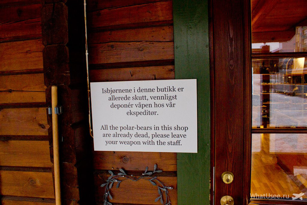 Как уже упоминалось ранее, за пределы Лонгйира без сопровождающего и ружья выходить нельзя — есть риск повстречать белого медведя.