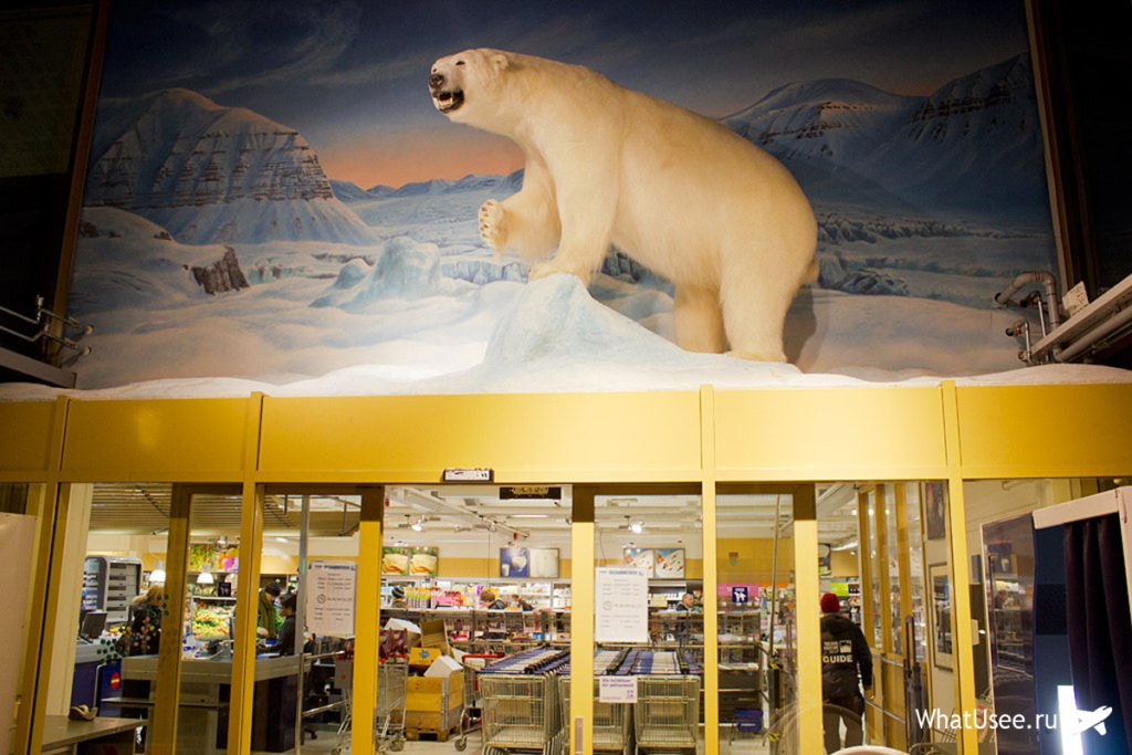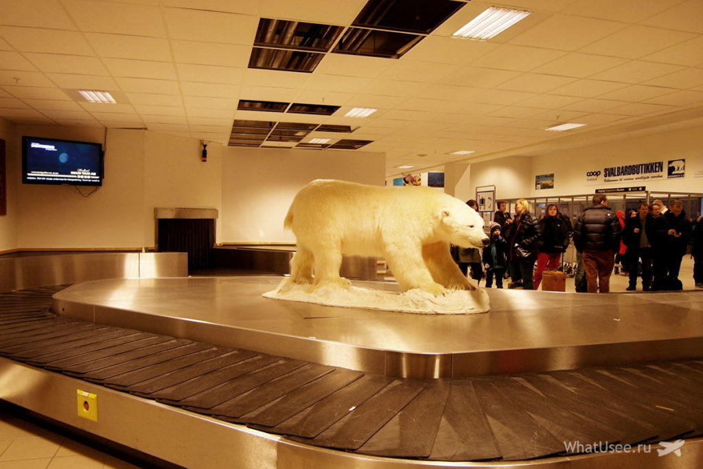 Прилетевших на архипелаг встречает чучело белого медведя на ленте выдачи багажа. Всё готовит вас к тому, что вы в Арктике.