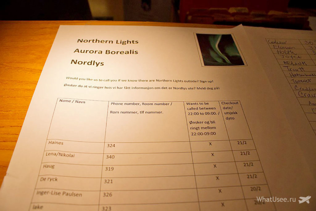 Сотрудники позвонят вам и тогда можно мчаться на улицу — смотреть северное сияние на Шпицбергене.