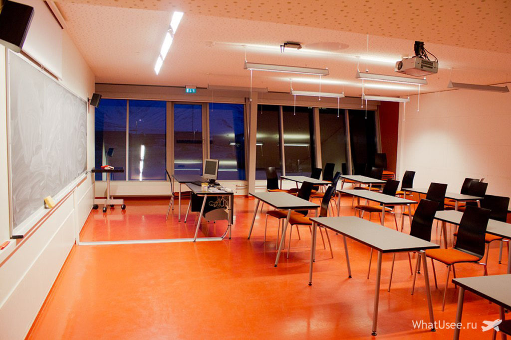 А это — единственный университет на Шпицбергене. Внутрь можно свободно попасть и погулять по аудиториям.