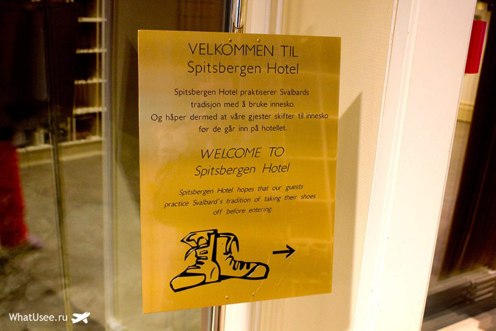 Необычная традиция на Шпицбергене, с которой вы столкнётесь — здесь снимают обувь при входе в общественные помещения (отели, музеи, университет). В ресторанах и магазинах обувь можно не снимать. У входной двери стоят шкафчики для обуви.