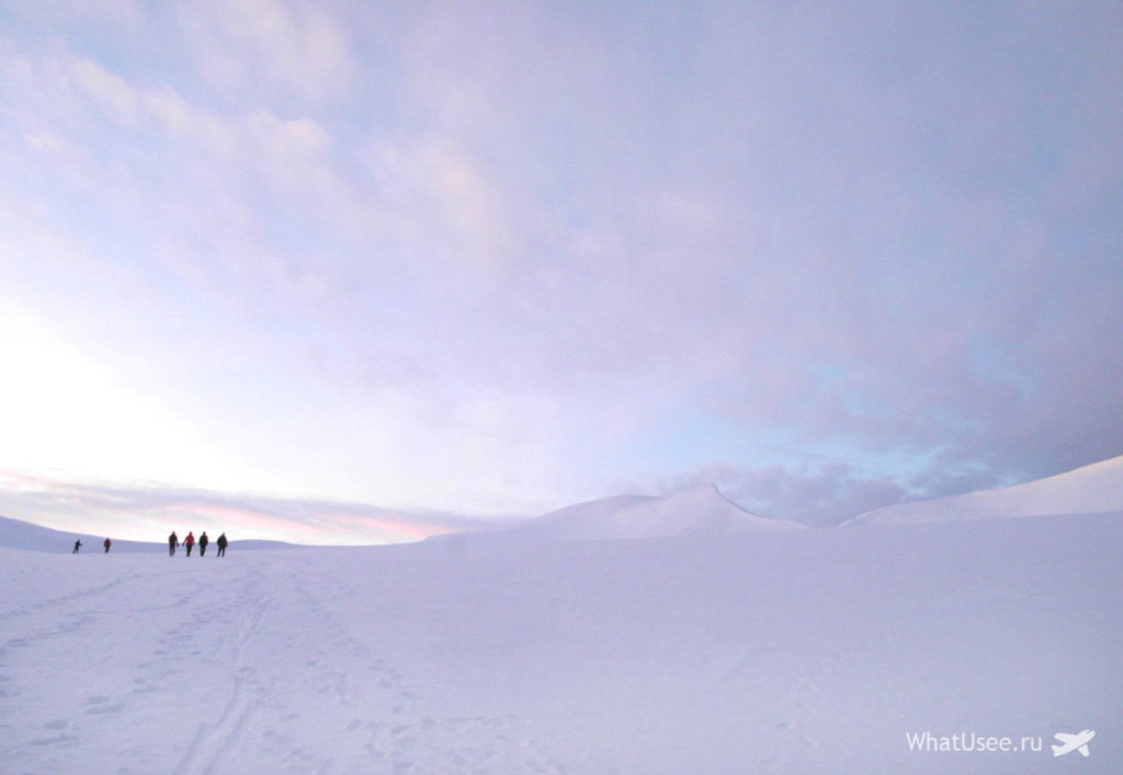 Кстати, во время нашей поездки на Шпицберген была аномально высокая для февраля температура (около 0 С), и все местные норвежские туроператоры отменили поездки на ледники — кроме нашего.