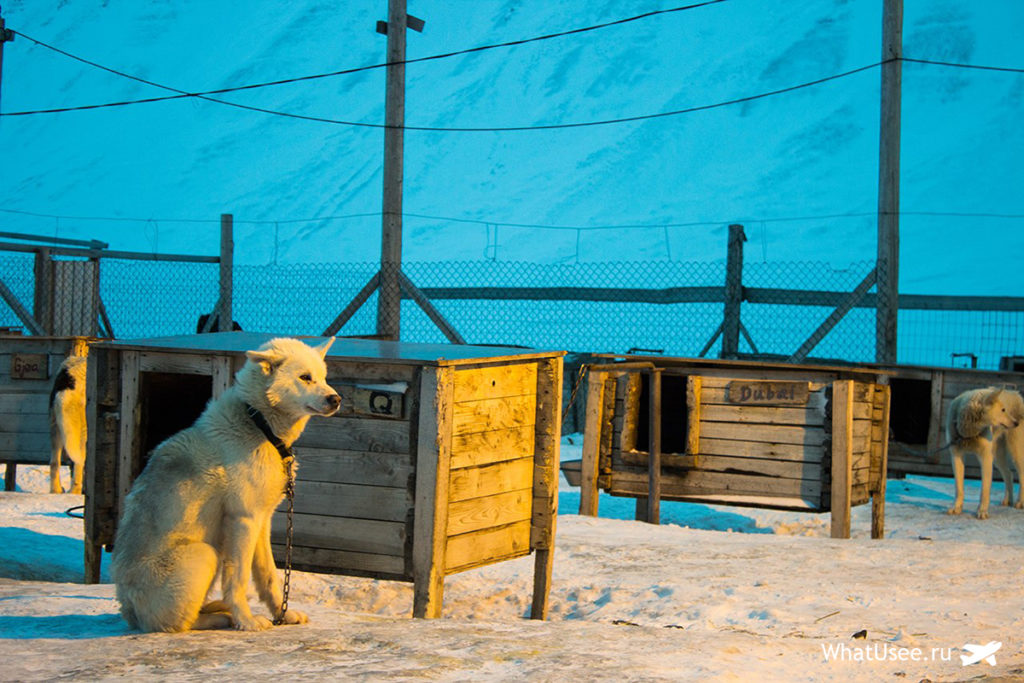 Всего ферм хаски в Лонгйире две. Нас отвезли на ферму Bolterdalen. Пёсики ухоженные, весёлые, встретят вас визгом и лаем — от радости. Они знают, что кому-то из них сейчас предстоит побегать и размять лапы