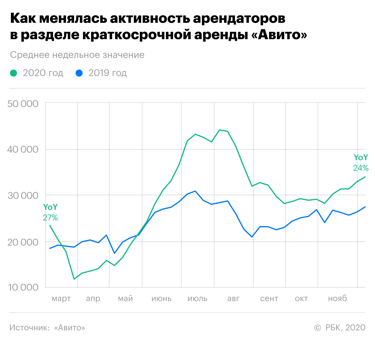 Во многих регионах гостиницы были закрыты. А там, где они продолжали работать, с постояльцев зачастую требовали справку об отсутствии коронавируса. В итоге туристы, предпочитавшие останавливаться в гостиницах, переключились на краткосрочную аренду жилья. Но даже в этом сегменте все равно было серьезное падение спроса. По данным «Авито Недвижимости», в апреле оно составляло до 50% к прошлогодним показателям.
