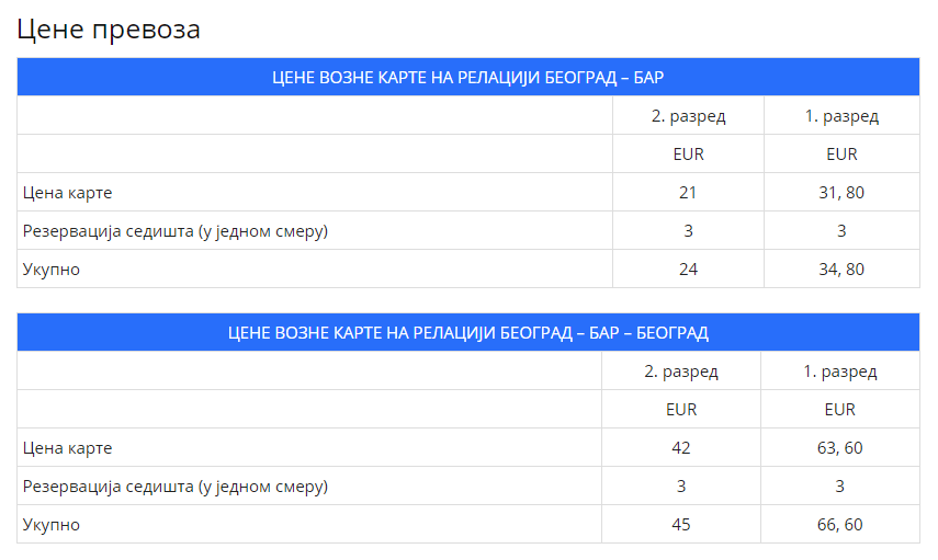 Кроме самолета, из Белграда до побережья Черногории можно добраться на поезде Белград — Бар (еще есть остановка в Подгорице — столице), он идет 14 часов, билет на него стоит от 20 до 30 евро в зависимости от класса вагона.