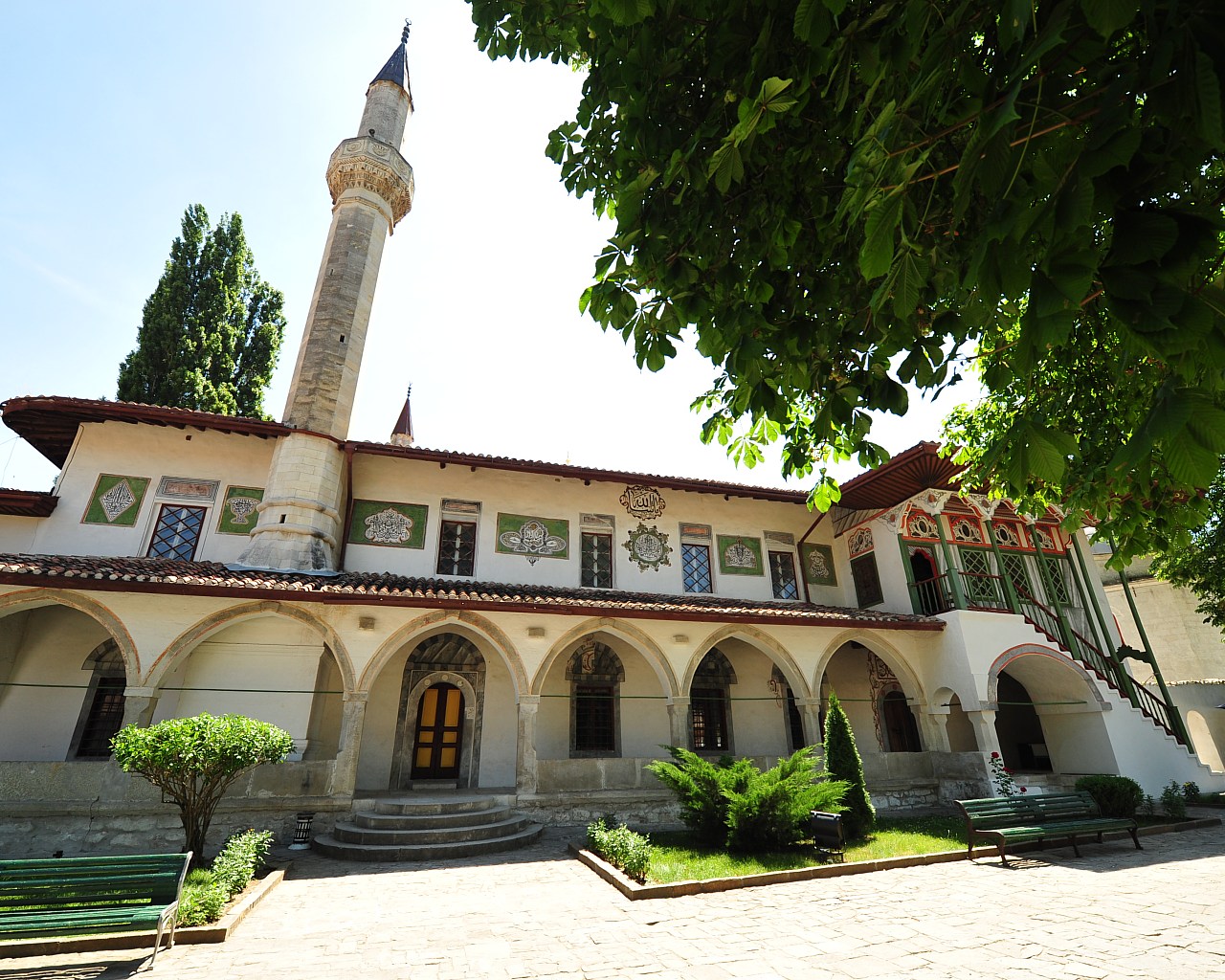 Не менее знаменит Бахчисарайский дворец. Он являлся резиденцией крымских ханов более 200 лет. В настоящее время дворец входит в состав Бахчисарайского историко-культурного заповедника и занимает площадь в 4,3 Га. Дворец выполнен в османском стиле, главной архитектурной идеей было воплощение мусульманского представления о райском саде на земле.