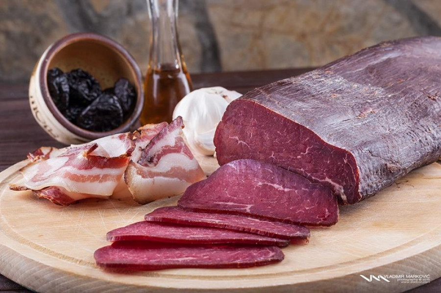 Любят здесь и пршут — вяленый и копченый свиной или говяжий окорок,напоминающий испанский хамон. Лучший пршут готовится два года.