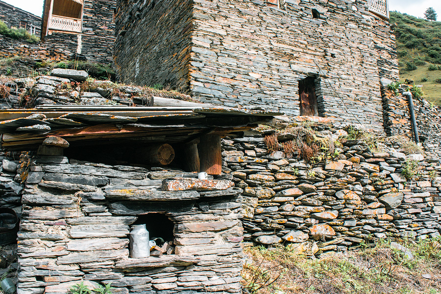 К слову ритуальная часть жизни горцев здесь очень хорошо отражает ту самую тонкую грань между христианством и язычеством. Исторически храмов у тушинцев не было. Местные часовни называются “ниши”, от грузинского нишани – “знак”, к ним запрещено приближаться женщинам. На этих часовнях некогда устраивали жертвоприношения баранов. Тушинцы не едят свинину (что, кстати, табу во многих племенных культурах, включая шипибо-конибо). Даже пиво в Тушетии варят исключительно мужчины.