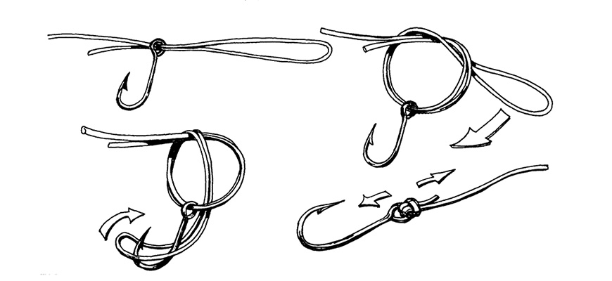 При выборе узла для привязывания крючка рыболов должен учитывать материал из которого изготовлена леска, ее диаметр, а также примерный размер рыбы, которую предполагается ловить.